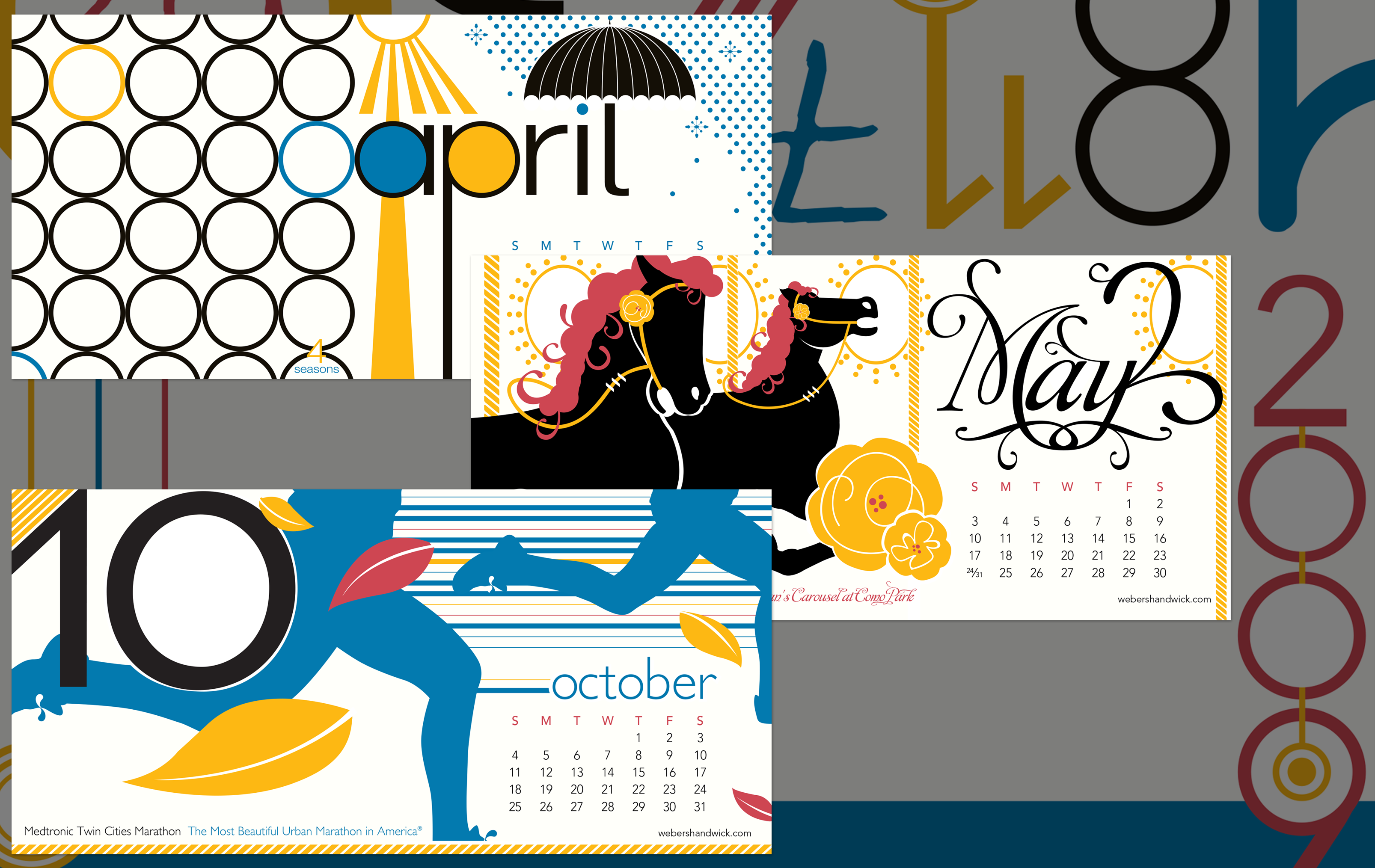A letterpressed calendar sent to clients and agency friends, celebrating the small, specific pleasures of each month in Minnesota. Creative direction, design, and illustration for Weber Shandwick. Award: AIGA MN Design Show.